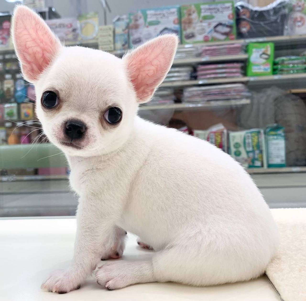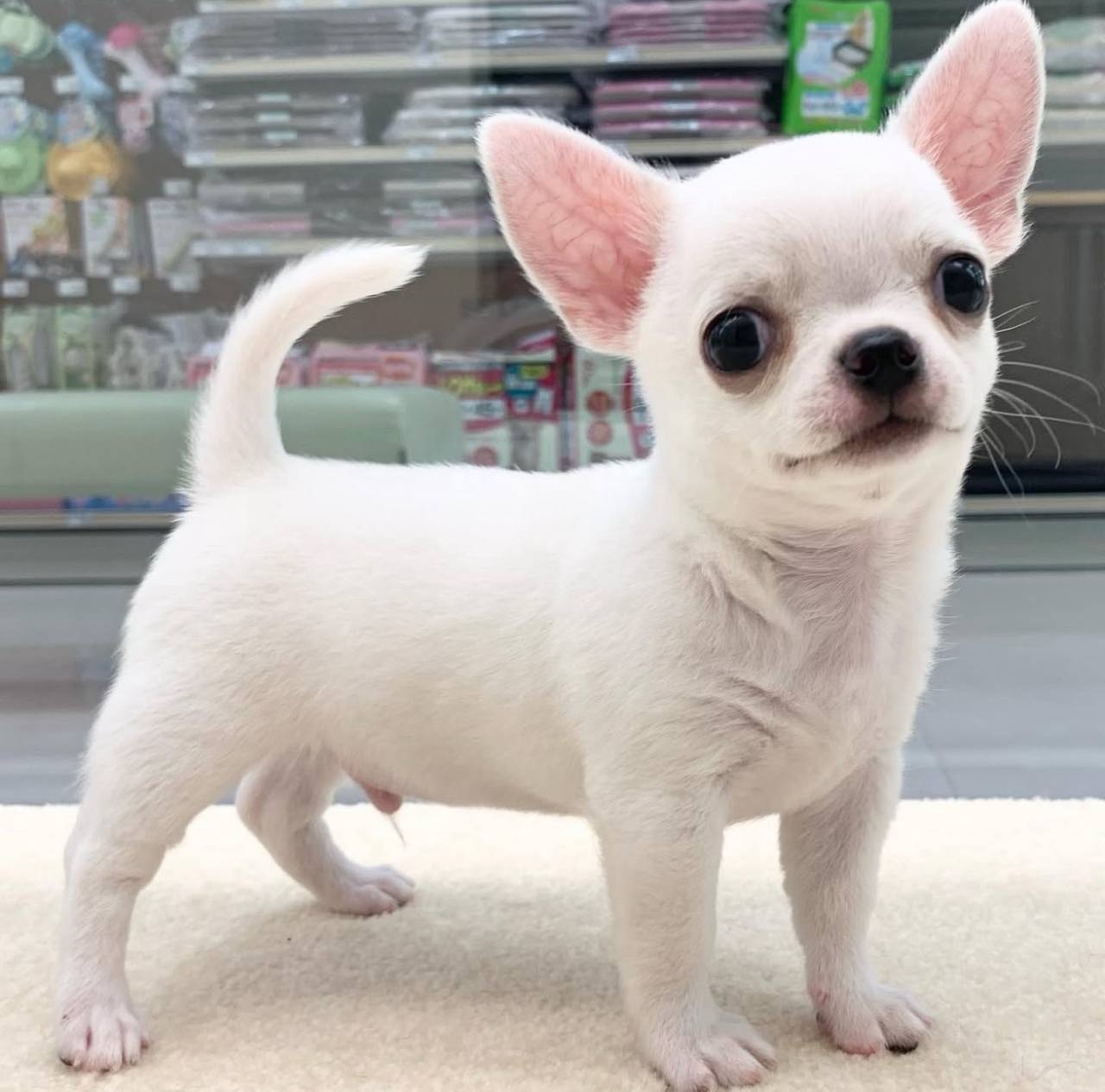 Introducing Duke, a charming little Chihuahua boy with a pure white short-haired coat. At just 8 weeks old, Duke is full of energy, curiosity, and affection β€” the perfect companion for families, kids, or anyone looking for a loyal and loving furry friend.