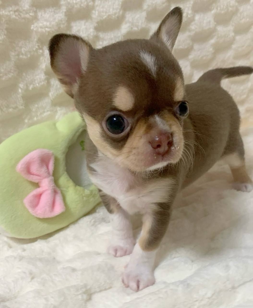 Meet Lola, a sweet and playful brown Chihuahua boy with a soft short-haired coat. At just 8 weeks old, Lola is full of energy, curiosity, and affection — the perfect little companion for families, kids, or anyone looking for a loving furry friend.